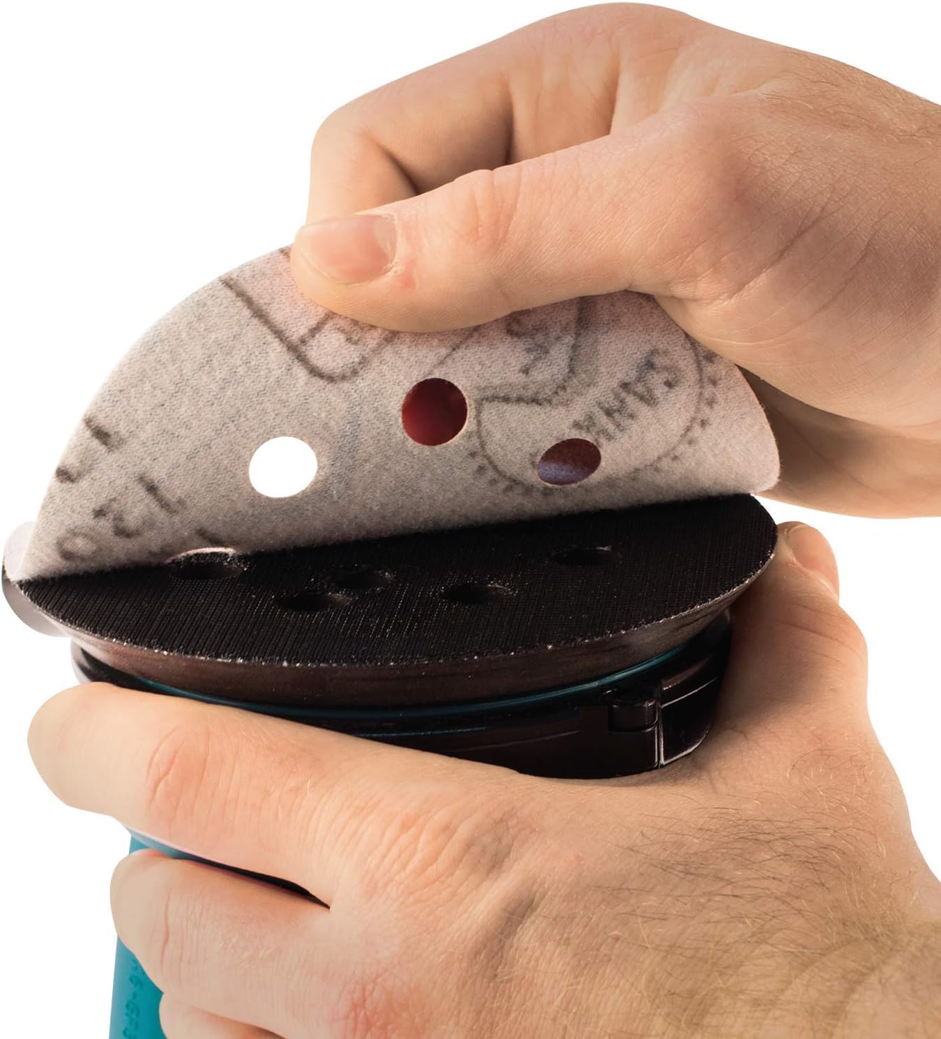 - Abrasive Attachment: Hook & Loop system (125mm, 8-hole discs).